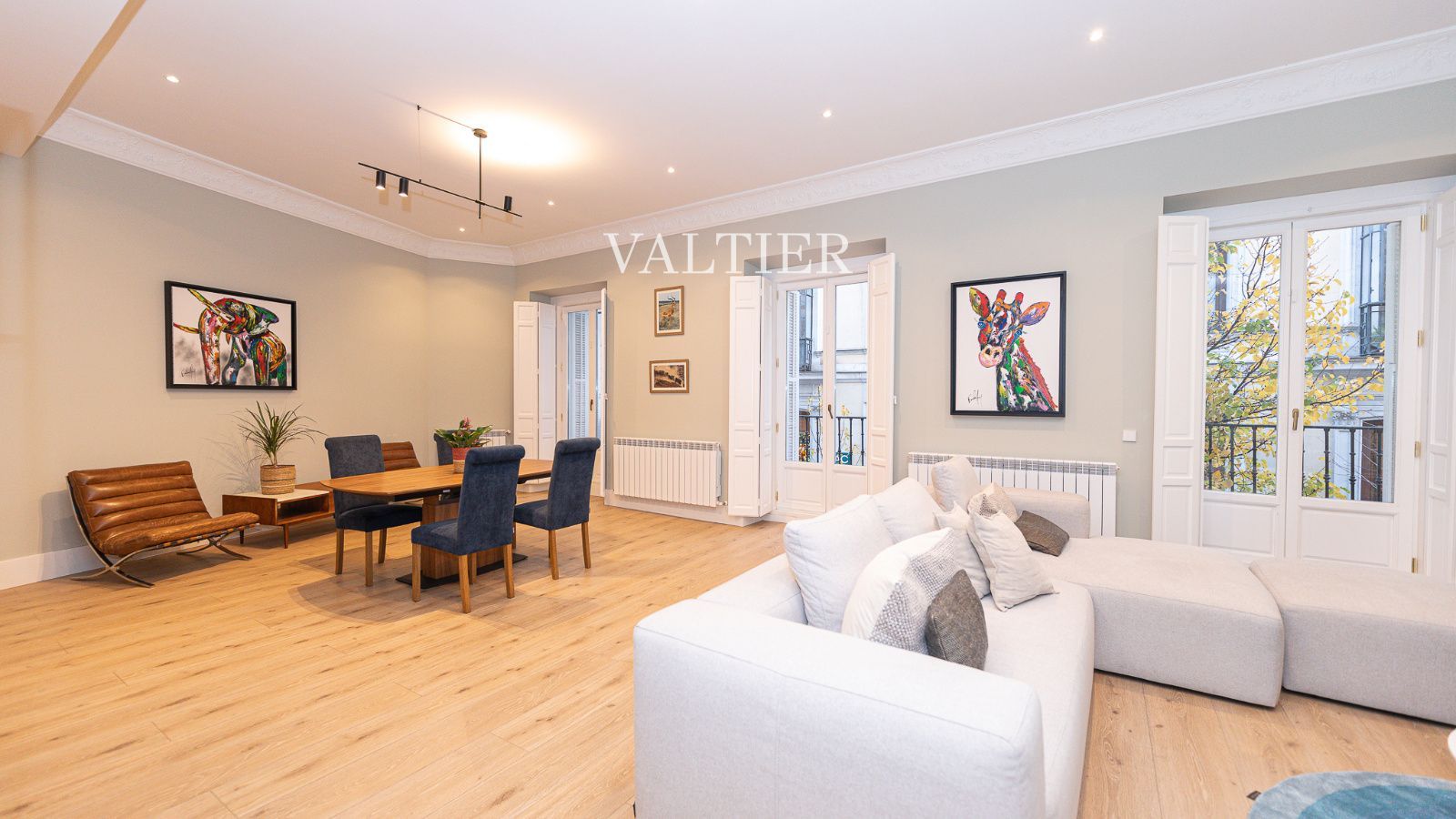 Amplio salón–comedor con tres balcones