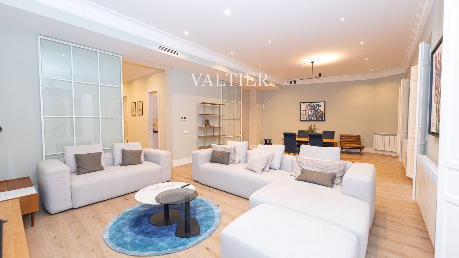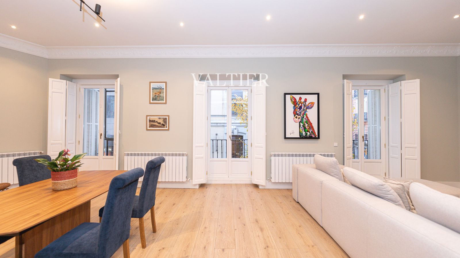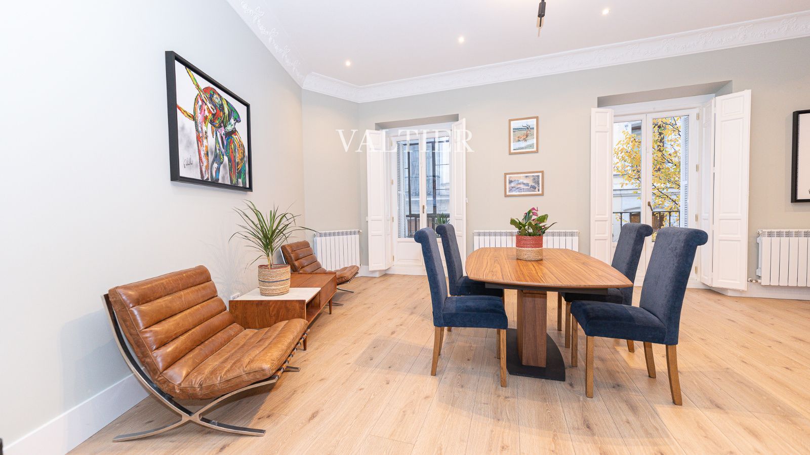 Destacan sus techos altos con molduras originales, la amplitud de los espacios y una cuidada selección de mobiliario de diseño.